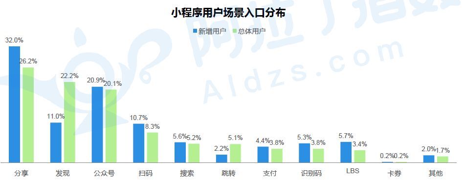 用户主要集中于分享、发现、公众号,而今还上线了顶部任务栏。用户将有更多机会、更多场景去访问对应的小程序服务。同时,微信在小程序内容传播上仍给予了很强的支持,虽然目前还不能分享到朋友圈,但是已经是设想之内,只是早晚的事儿了。